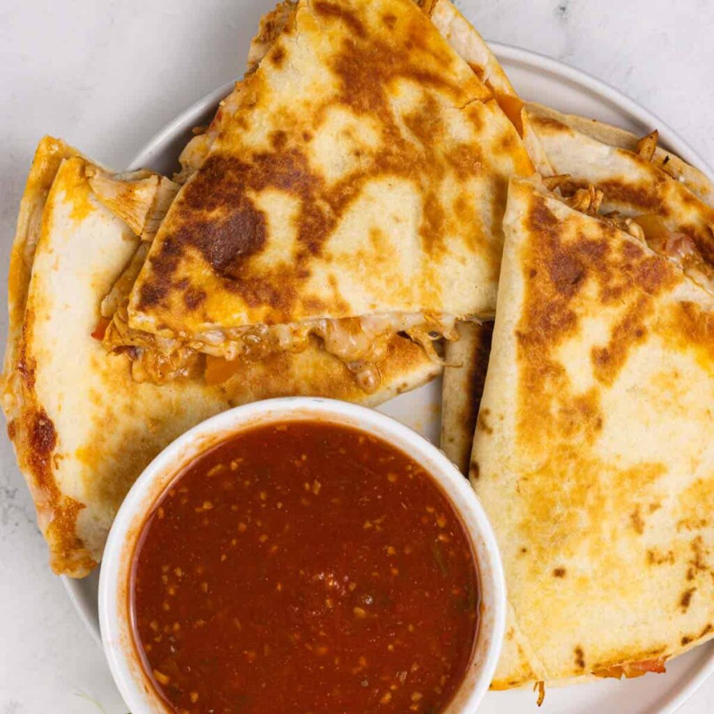 • Avoid overfilling: Keep the filling moderate; too much can make it difficult to flip the quesadilla without spilling.