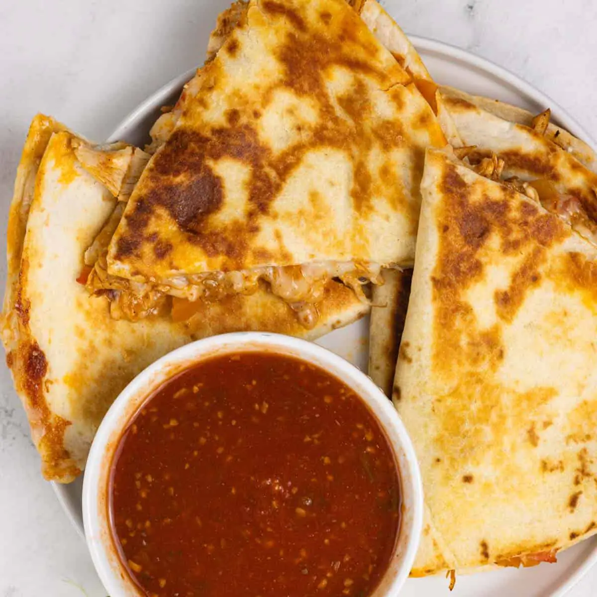 • Store leftover shredded chicken quesadillas in an airtight container.